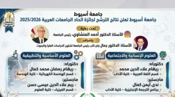جامعة أسيوط تعلن نتائج الترشح لجائزة أفضل رسائل الماجستير والدكتوراه لاتحاد الجامعات العربية 2025/2026