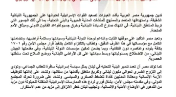 مصر: قصف إسرائيل للمنشآت والبنى التحتية بلبنان سياسة سافرة للعقاب الجماعي